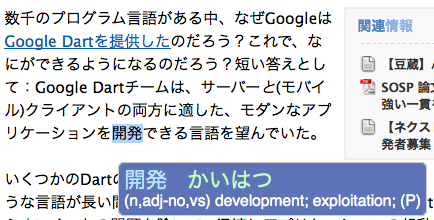 I’ve known of a Firefox add-on I’m very fond of for a long time now called Rikaichan. When enabled, you have hover your mouse over the kanji text and it will popup a box with the translation. You must install the Firefox add-on in the previous link and a proper dictionary to your native language from Rikaichan’s webpage. And that’s it.