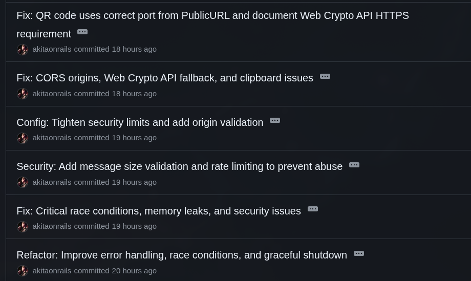 Nesta versão já abre o que eu chamo de página “host” que é a página que abriria na minha TV, mostrando o QR Code pra conectar. Já tem a página “client”, que é o que o QR Code vai abrir no meu celular. E já consegue colar texto no cliente, mandar pro host e copiar no clipboard dele. Bem simples.